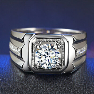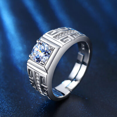 Nhẫn nam Moissanite giả đơn giản nhẫn cao cấp độc đoán mạ bạch kim khảm kim cương rực rỡ 30 điểm