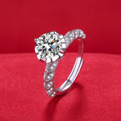 Sống Mới Giả Moissanite Nhẫn Đứng Kim Cương Thời Trang Nữ Cổ Điển 6 Móng Nhẫn Một Carat Nhẫn Cưới Cặp Nhẫn Có Thể Điều Chỉnh