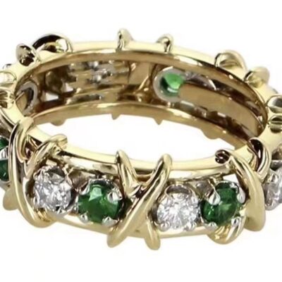 Nhẫn ngọc lục bảo ba mảnh trang sức mới quốc tế của châu Âu và Mỹ
