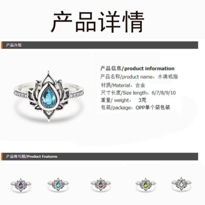 Nhẫn hình hoa sen cổ điển quốc tế Longrui bán chạy nhất trang sức hoa giọt nước đính kim cương dành cho nữ Nhẫn thời trang đơn giản đính kim cương