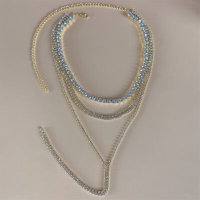 Amazon Nổ Nhiều Lớp Kim Cương Giả Tua Dài Vòng Cổ Nữ Cá Tính Thời Trang Pha Lê Sáng Bóng Xương Đòn Dây Chuyền Bán Buôn