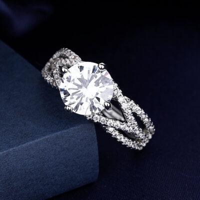 Nhẫn công chúa Aisha nữ phát sóng trực tiếp gương chéo một carat bông hoa xoắn cánh tay nhẫn kim cương nhẫn cưới tùy chỉnh nhẫn moissanite