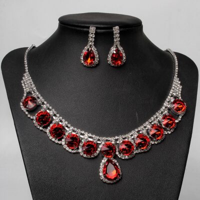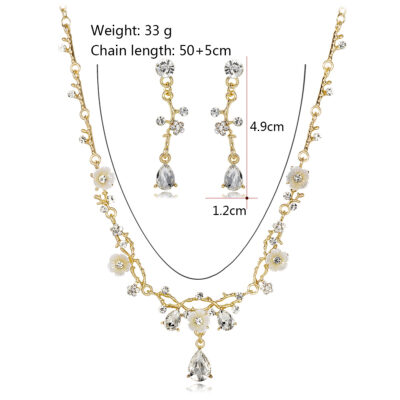 Nhà máy trực tiếp bán bộ thời trang Châu Âu và Mỹ dây chuyền cô dâu cưới trang sức thời trang Hàn Quốc hợp kim kim cương giả bông tai vòng cổ kim cương giả