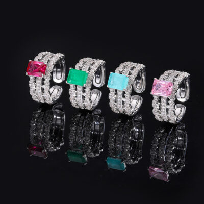 Kho báu màu sắc rực rỡ trong cảm giác cao cấp được dát đầy đủ kim cương nhẫn nữ mở sapphire khí chất quý phái và đa năng phong cách rung