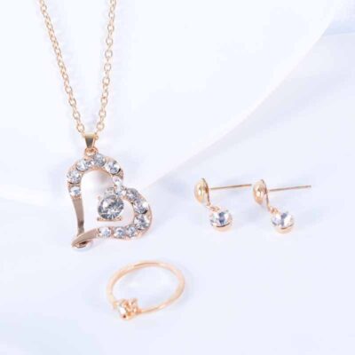 Qifu Trang Sức Thời Trang Hàn Quốc Bộ Trang Sức Đá Tình Yêu Vòng Cổ Vòng Cổ Nhẫn Nhẫn Bông Tai Bộ Ba Món