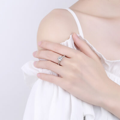 JZ399 Xoắn Mây Một Carat Mô Phỏng Kim Cương Nhẫn Nữ 1 Carat Trắng Đồng Mạ Bạch Kim Đơn Nhẫn Cưới Kim Cương