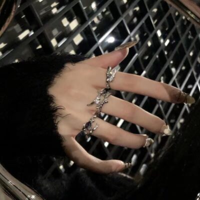 Nhẫn ba mảnh sinh viên nữ thủy triều thiết kế hốc đá quý cao cấp cá tính mở ngón trỏ có thể điều chỉnh