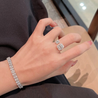 Phiên bản Hàn Quốc của chiếc nhẫn kim cương carbon cao túi vuông, nhẹ nhàng sang trọng, khí chất dát kim cương, nhẫn mở, nhẫn đôi, quà tặng thay cho mái tóc