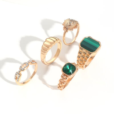 Thời trang Âu Mỹ cung cấp mới thời trang phong cách retro giả đá quý nhẫn kết cấu ngôi sao Bộ nhẫn kim cương 5 chiếc
