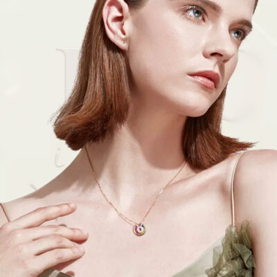 Màu Sắc Lá Bùa Hộ Mệnh Vòng Cổ May Mắn Bùa Hộ Mệnh Mặt Dây Chuyền Nữ Mạ 18K Hoa Hồng Vàng Nhiều Màu Sắc Đá Quý Ánh Sáng Vòng Cổ Cao Cấp Nữ