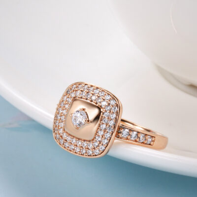 Phụ kiện nổ quốc tế Nhẫn zircon lớn hình vuông 585 Nhẫn kim cương mô phỏng vàng hồng Bán chạy trên Amazon