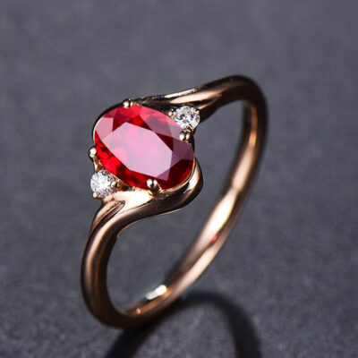 Thanh toán trực tiếp màu sắc kho báu nhẫn nữ thời trang hình bầu dục kim cương đỏ hồng vàng mở nhẫn nhẫn ruby máu gà