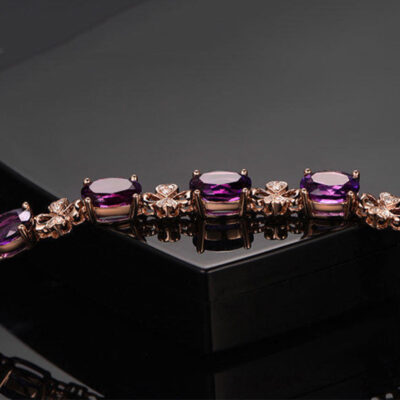 Vòng tay thạch anh tím sang trọng Châu Âu Nhẫn kim cương bốn móng thạch anh tím hình giọt nước tính khí móc tai màu sắc kho báu mặt dây chuyền sáng tạo