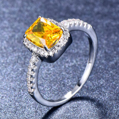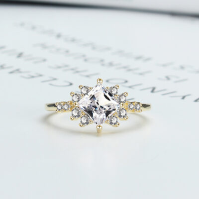 Nhẫn đính hôn đính đá vàng 14k quốc tế châu Âu và Mỹ Nhẫn đính kim cương zircon hình vuông mới