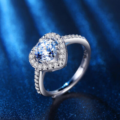 chúc vụ nổ phong cách đơn giản hình trái tim zircon nhẫn kim cương cầu hôn đính hôn đính hôn nhẫn kim cương thời trang trang sức tinh tế bán buôn