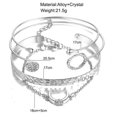 Mới cá tính sáng tạo vòng tròn kim loại dát đá mở vòng đeo tay ins vòng tay vòng đeo tay bộ bốn món