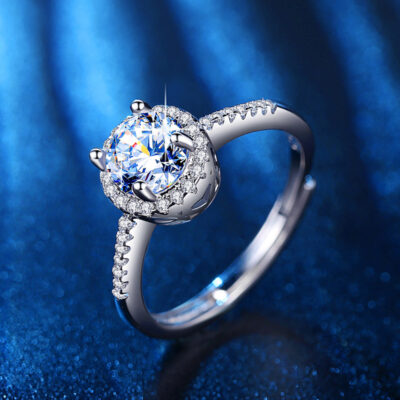Douyin Kuaishou phát sóng trực tiếp các mô hình vụ nổ khảm 1 carat Moissanite giả nhẫn hở trang sức bạch kim pt950