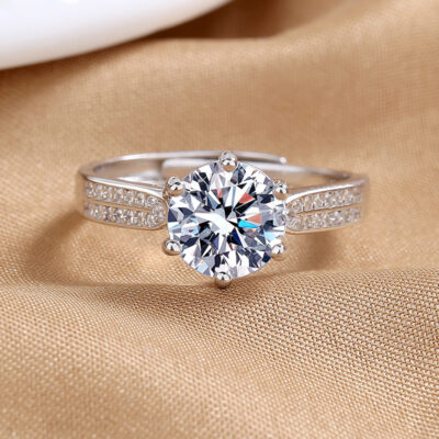 Nhẫn kim cương Moissanite nữ phiên bản Hàn Quốc nữ mô phỏng sáu móng nhẫn kim cương nhẫn đôi nhẫn cưới mở bán buôn nhẫn đơn giản