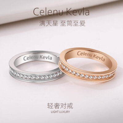 Nhẫn đôi CelnuKevla đầy sao hình tròn vàng hồng nam nữ cổ điển đơn giản cá tính Nhẫn đôi thép titan