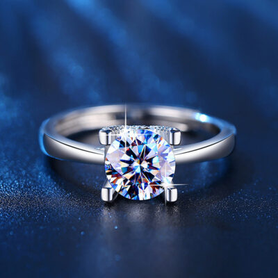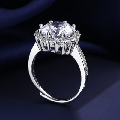 Nhẫn nam thời trang châu Âu và Mỹ Nhẫn kim cương bốn móng zircon cao cấp moissanite nhẫn mở quốc tế Nguồn bán chạy nhất