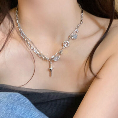 Chữ Thập Đính Đá Zircon Nữ Mùa Hè Ngọt Mát Gia Vị Phụ Kiện Vòng Cổ Ngách Thiết Kế Cảm Giác Đa Năng Xương Đòn Dây Chuyền Xu Hướng