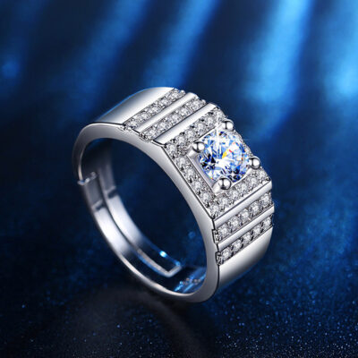 Nhẫn kim cương Moissanite trực tiếp cho nam Nhẫn cưới kim cương 1 carat hợp thời trang Nhẫn nam mạ bạch kim kim cương lớn độc đoán Nhẫn nam Moissanite