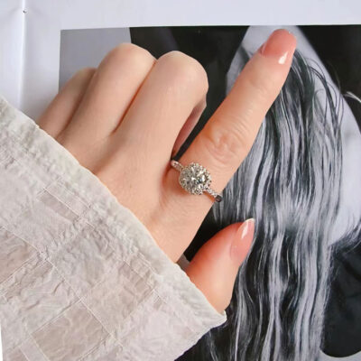 Phiên bản Hàn Quốc của chiếc nhẫn nữ đính kim cương Sunflower Hao mới thiết kế miệng trực tiếp 5 carat Moissanite rung phát sóng trực tiếp với cùng một phong cách