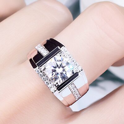 Phiên bản bóng bẩy Nhẫn độc đoán giả kim cương Moissanite cổ điển ổn định và thanh lịch thời trang nam Nhẫn cưới nam cá tính hợp thời trang