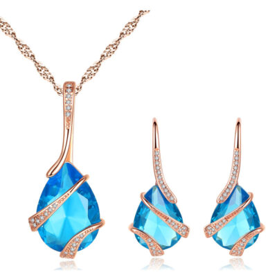 Thiết Kế Retro Âu Mỹ Pha Lê Vòng Cổ Đá Quý Bộ Bông Tai Thiết Kế Tinh Tế Tính Khí Thời Trang Trang Sức Cô Dâu
