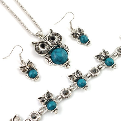 Bộ trang sức retro châu Âu và Mỹ phong cách dân tộc con cú mặt dây chuyền khảm bông tai vòng cổ vòng tay trang sức nữ