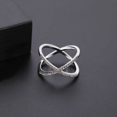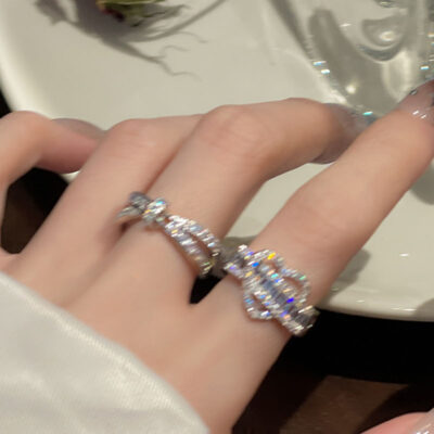 Tình Yêu Cao Cấp Chéo Nhẫn Đính Đá Zircon Nữ Ins Phong Cách Lạnh Thích Hợp Ngón trỏ Nhẫn Ánh Sáng Sang Trọng Tinh Tế Vòng Mở