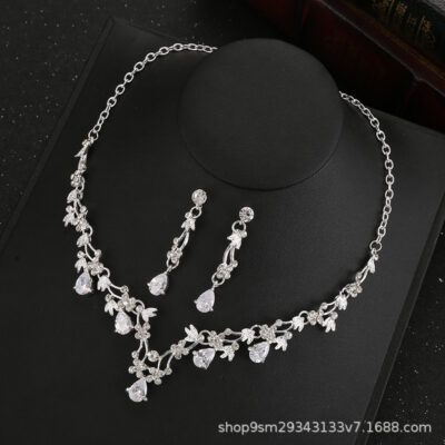 Phong Cách Hàn Quốc Đính Đá Zircon Vòng Cổ Cô Dâu Bán Chạy Nhất Amazon Nữ Hoàng Hợp Kim Vòng Cổ Bông Tai Cưới Bộ Ba Món Phụ Kiện