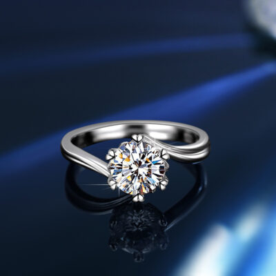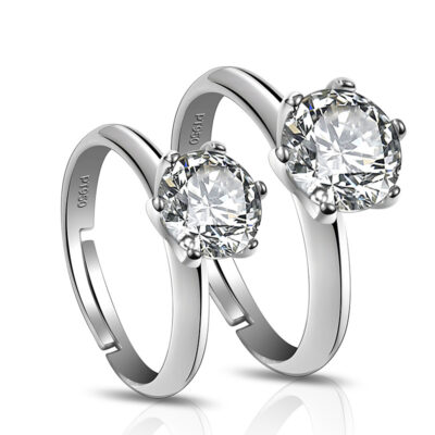 Nhà máy bán trực tiếp nhẫn nữ sáu móng một carat nhẫn sống miệng nhẫn nữ zircon mạ bạc cho cặp đôi trang sức đầu tiên của phụ nữ bán buôn