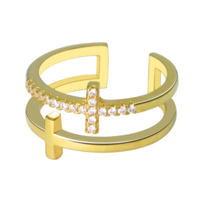 Nhẫn đeo chéo hai lớp thời trang Nhật Bản và Hàn Quốc mở đầu bằng đá zircon thời trang có thể điều chỉnh phân phối bán buôn