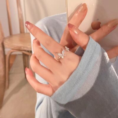 Nhẫn hình bướm đính đá zircon siêu cổ tích phiên bản Hàn Quốc mở đầu cá tính hốc nhẹ sang trọng cao cấp Nhẫn ngón trỏ thời trang nữ