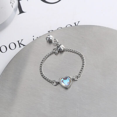 Nhẫn cổ mèo Ning tình yêu dây chuyền ins phiên bản Hàn Quốc đầy màu sắc hình trái tim bằng đá mặt trăng ngón trỏ nhẫn lưới nữ màu đỏ