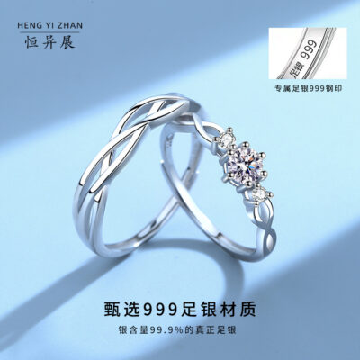Nhẫn bạc 999 nam nữ một cặp thủy triều phiên bản Hàn Quốc của thiểu số trông giống nhau cặp đôi nhẫn cầu hôn món quà tỏ tình