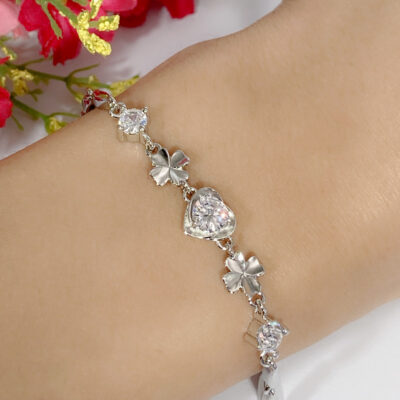 Mới Đào Trái Tim Hình Trái Tim Vòng Tay Thạch Anh Tím Cỏ Bốn Lá Mạ Bạch Kim Biển Topaz Xanh Vòng Tay Hoa Quà Tặng