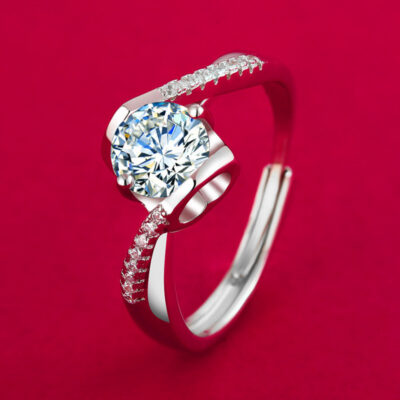 Nhẫn hôn thiên thần một carat Nhẫn kim cương giả Moissanite nữ Châu Âu và Mỹ Nhẫn mở zircon cánh tay xoắn Nhẫn hình trái tim