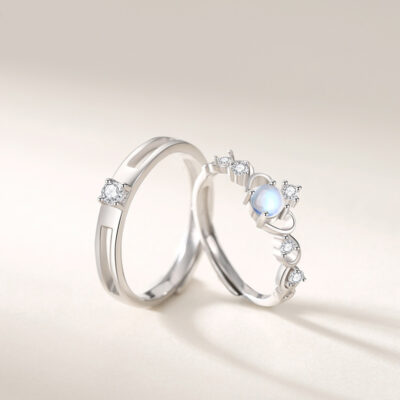 Elaine Bạc S925 Đá Mặt Trăng Cặp Nhẫn Thích Hợp Ins Thiết Kế Vương Miện Cặp Nhẫn Lưới Đỏ Quà Tặng Ngày Lễ Tình Nhân