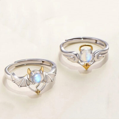 Mới Thiên Thần Và Ác Quỷ Nhẫn Đá Mặt Trăng Thiết Kế Hốc Cảm Giác Cao Cấp Mở Vòng Có Thể Điều Chỉnh Nhẫn Bán Buôn