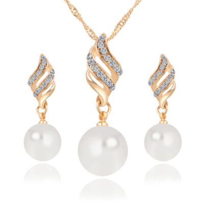 Qifu [vàng và bạc] thời trang đơn giản cô dâu hoa tai kim cương vòng cổ vòng cổ ngọc trai xoắn ốc đặt bán buôn