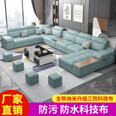 Công nghệ sofa vải căn hộ lớn và nhỏ kết hợp góc vải da có thể tháo rời và giặt được phòng khách tối giản hiện đại sofa vải hoàn chỉnh