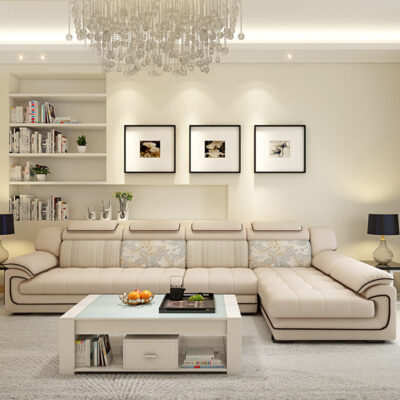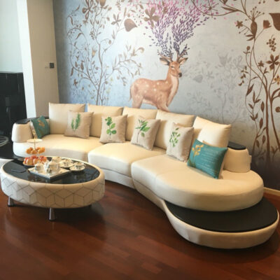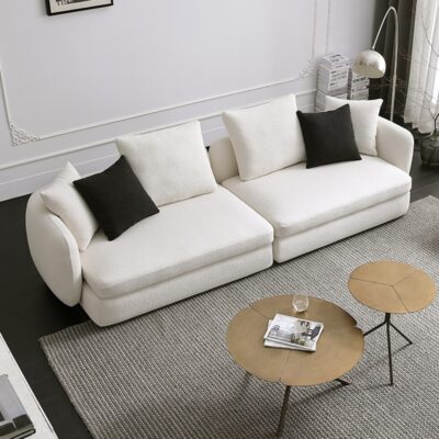 Sofa vải new vải phòng khách lớn nhỏ phong cách Ý màu kem sang trọng nhẹ nhàng hoàn thiện nội thất phòng khách