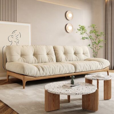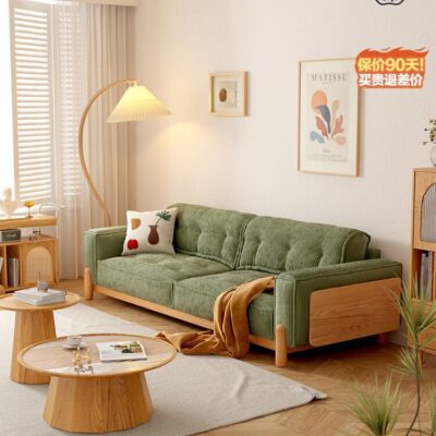 Sofa kiểu Nhật căn hộ nhỏ gỗ đặc đơn giản 3 người phong cách khúc gỗ màu kem đậu hũ vải nhung sofa