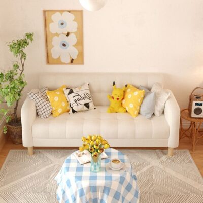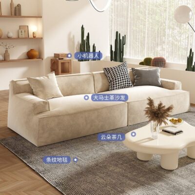 Sofa gió màu kem phòng khách căn hộ nhỏ đơn giản phong cách Nhật ins lưới đỏ ba người kết hợp hàng thẳng sofa vải phồng