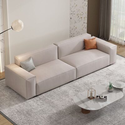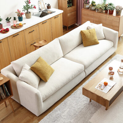 Sofa vải kiểu Ý đơn giản cho căn hộ nhỏ kiểu kem sofa ba chỗ ngồi thẳng hàng phòng khách sofa vải kiểu Nhật