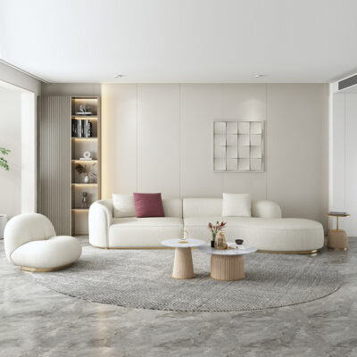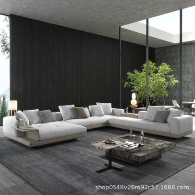 Sofa vải góc cong theo phong cách Ý mới phòng khách chung cư lớn Bắc Âu hiện đại tối giản thiết kế đặc biệt hình sofa