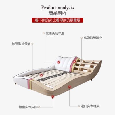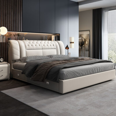 Giường da dòng chữ tối giản hiện đại giường đôi 1,8m1,5m giường mềm lưu trữ khí nén hộp cao phòng ngủ chính giường hôn nhân