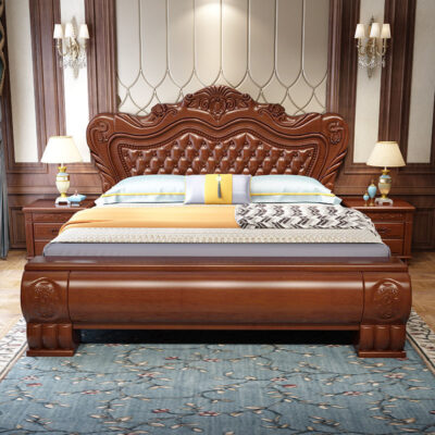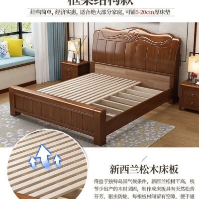 Giường Gỗ Châu Âu 1.8M Giường Cưới 1.5M Chạm Khắc Sang Trọng Giường Công Chúa Phòng Ngủ Chính Giường Lớn Giường Hộp Cao Cấp Giường Nhà